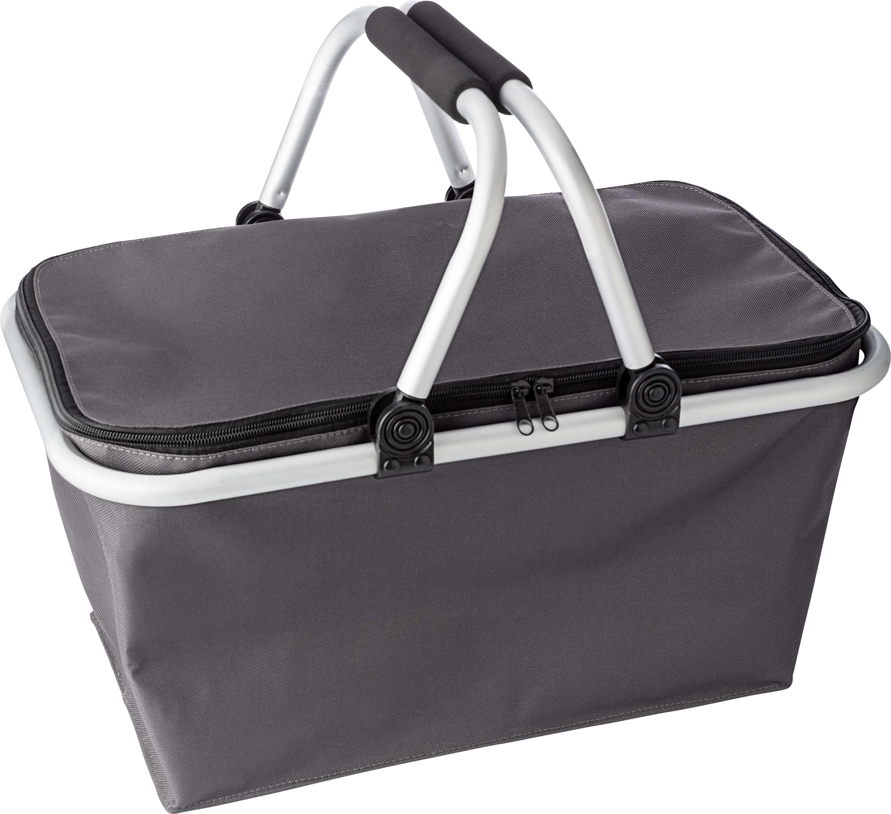 Cesto dobrável em tela Oxford com uma moldura de aluminio e empunhadura em espuma EVA com fecho de correr.