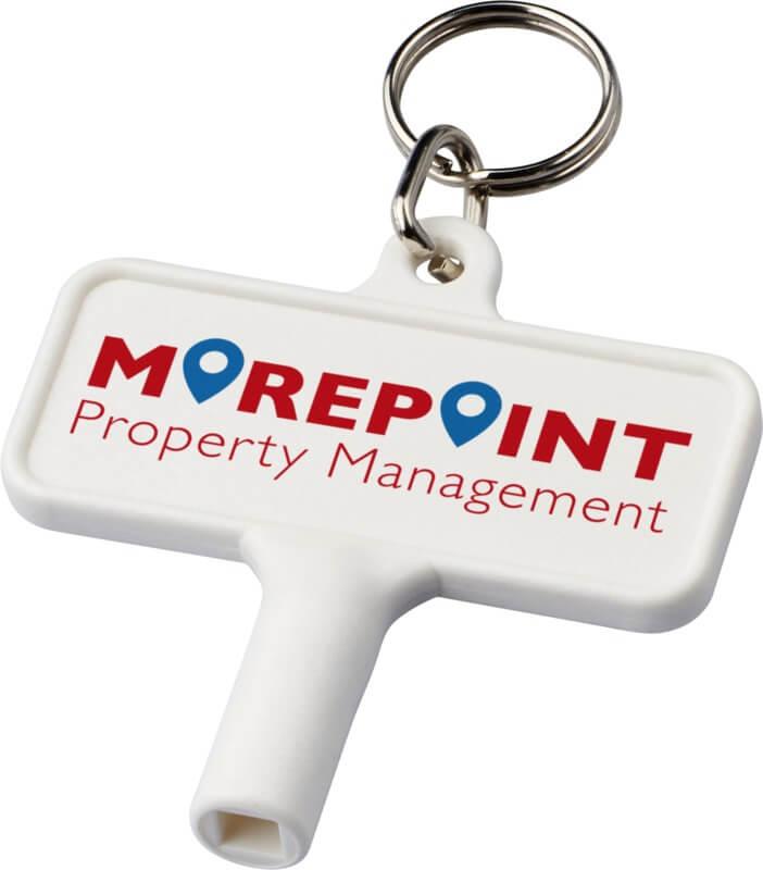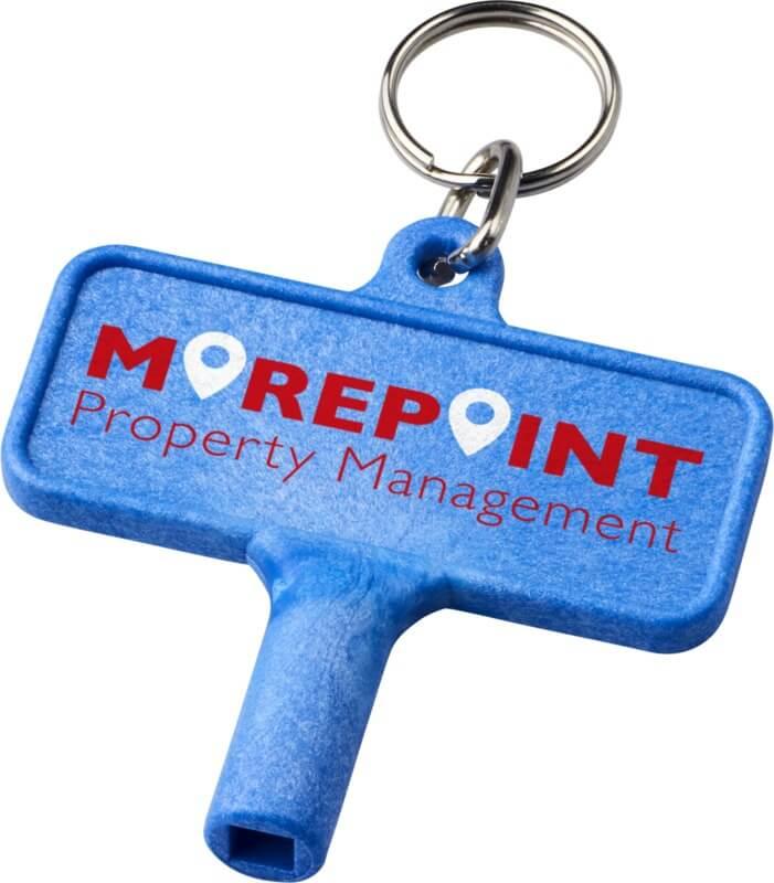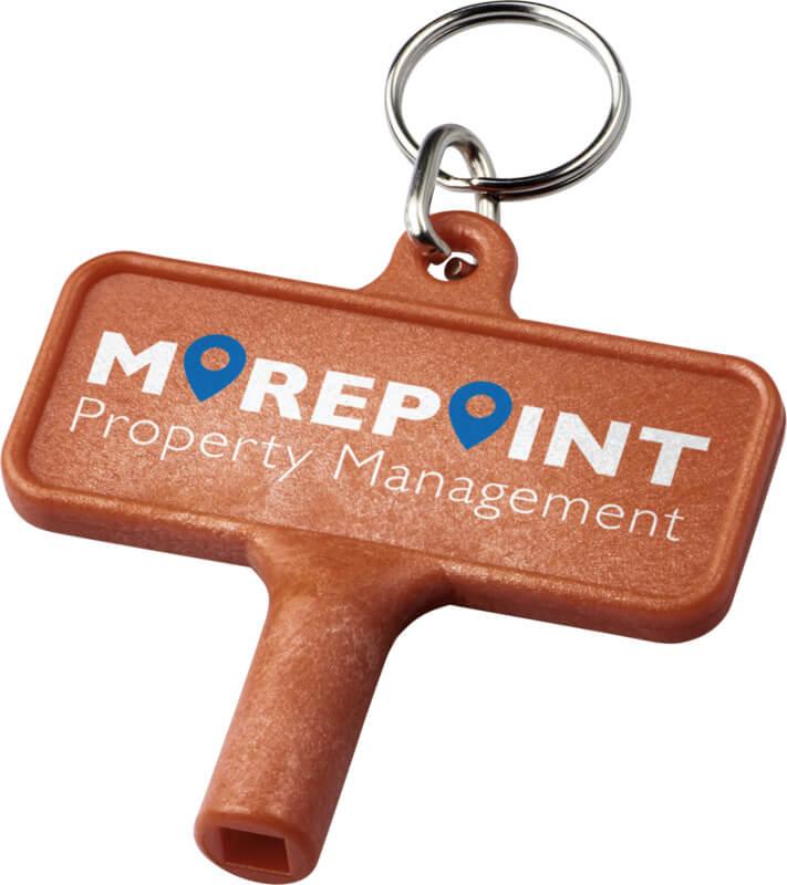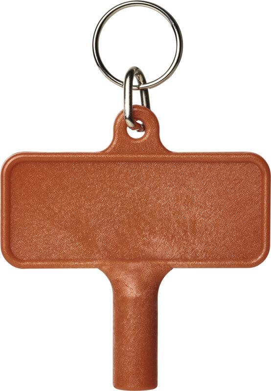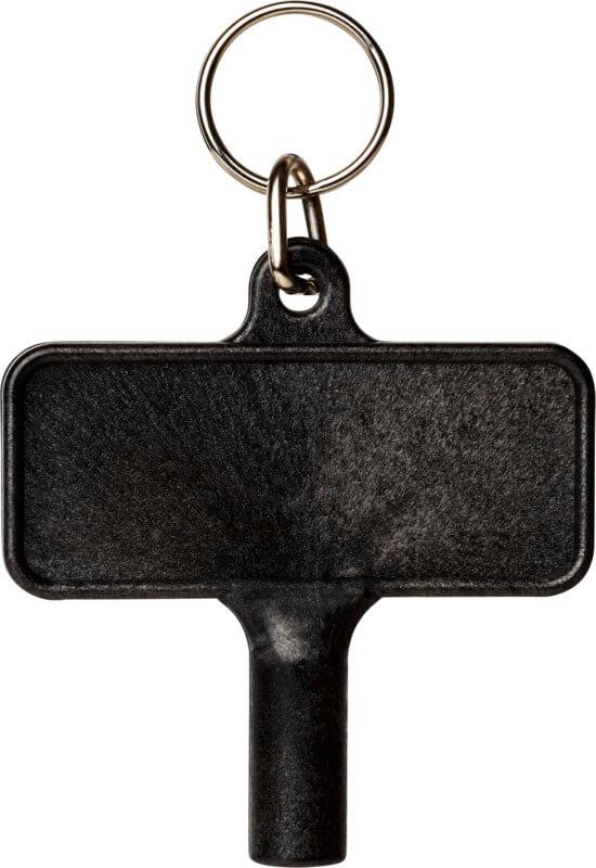 Chave multi-ferramentas com porta-chaves para artigos, tais como radiadores, caixas de contador, postes de eletricidade. As dimensões para a abertura é uma forma quadrada com lados de 5 mm.