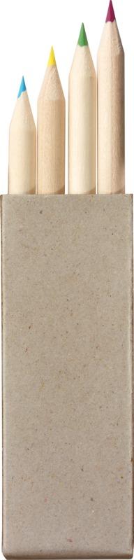 4 lápis de cor em caixa de cartão. Decoração não disponível nos componentes.