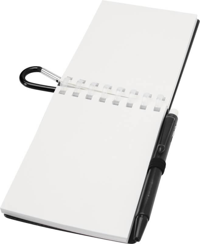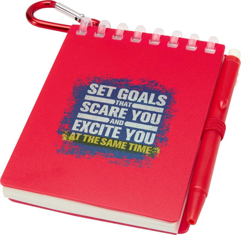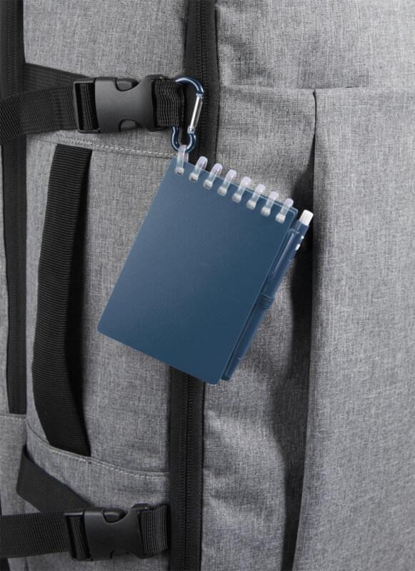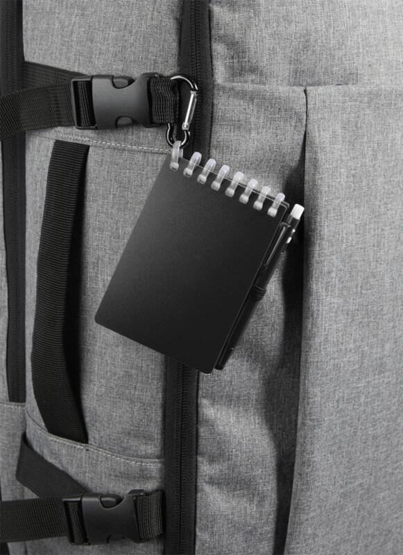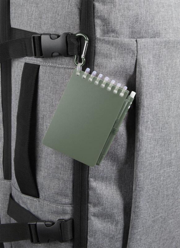 O conjunto de minicaderno e caneta “Lig” é um companheiro compacto e prático para fazer anotações em qualquer lugar. O caderno com espiral tem uma capa macia de plástico reciclado e 70 folhas brancas de papel de pedra resistente à água de 120 g/m², tornando-o ideal para uso no exterior. Com cantos arredondados e um suporte para canetas integrado, este caderno adota a tendência do tamanho mini ao mesmo tempo que permanece funcional. A esferográfica correspondente é feita de plástico ABS reciclado, escreve em tinta preta e oferece um comprimento de escrita de 250 metros. Um anel de metal com coordenação e cores permite que o conjunto seja facilmente fixado a uma mochila, bolsa ou porta-chaves, tornando-o perfeito para anotações duráveis e portáteis. Tamanho do caderno: 11 x 7,5 cm.