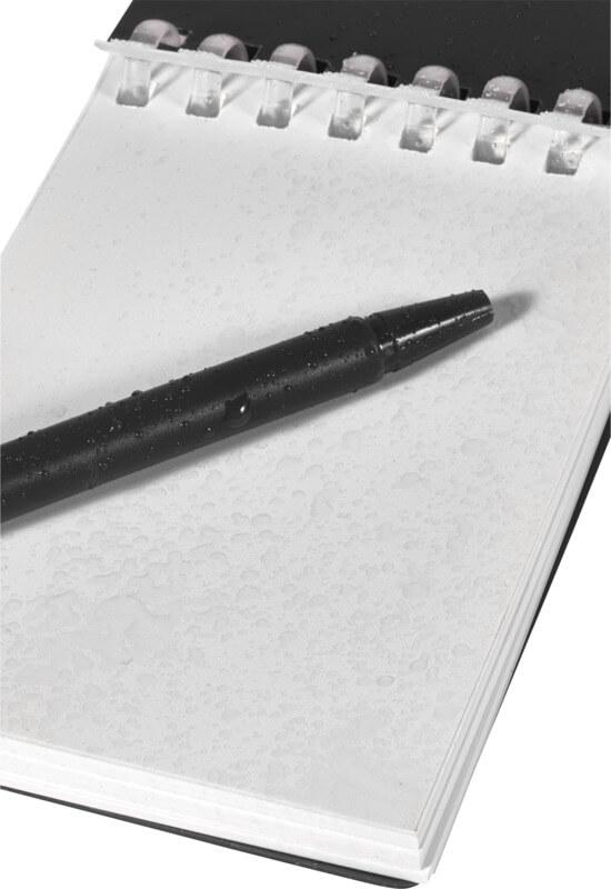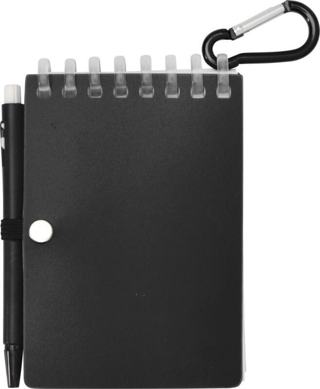 Conjunto de bloco de notas de capa mole e esferográfica de plástico reciclado para exterior (tinta preta) “Lig Mini”