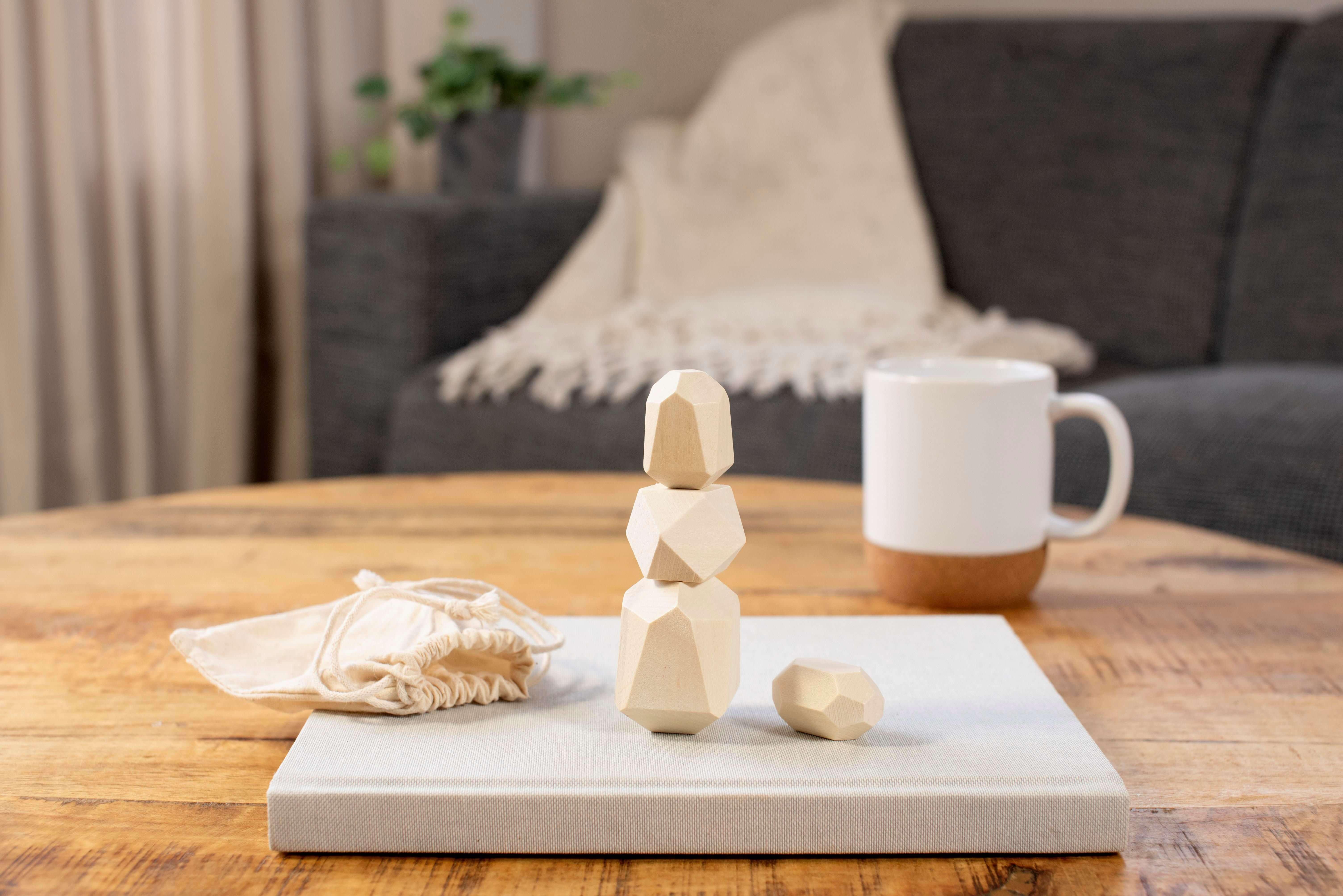 Conjunto de habilidades em madeira apresentado num saco de algodão com cordão. Manual incluído.