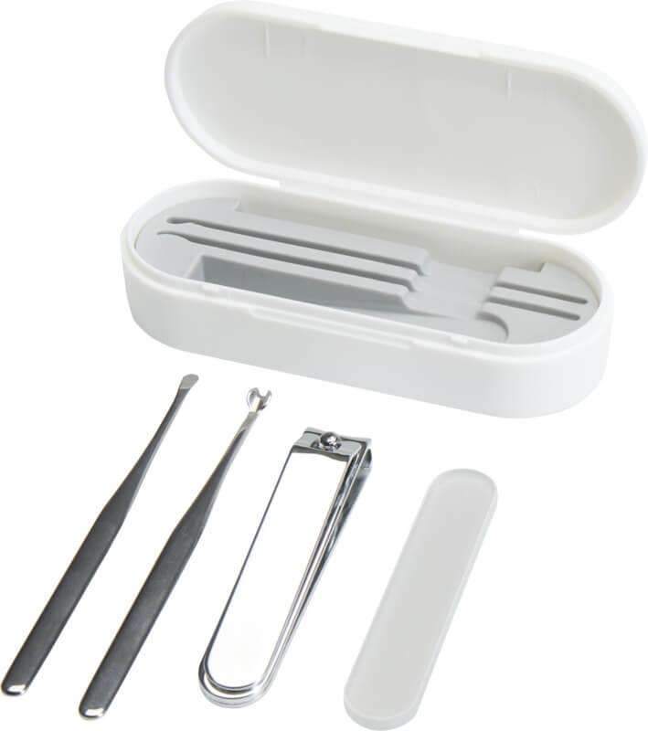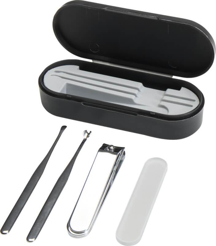 O conjunto de manicure “Beautix” inclui todos os artigos essenciais para unhas bem cuidadas e limpas, e um cuidado detalhado. Apresenta uma lixa de vidro suave para unhas, um corta-unhas durável, um palito de cutícula de precisão e uma colher auricular para uma limpeza versátil. É compacto, portátil e ideal tanto para uso doméstico como para retoques em qualquer lugar.