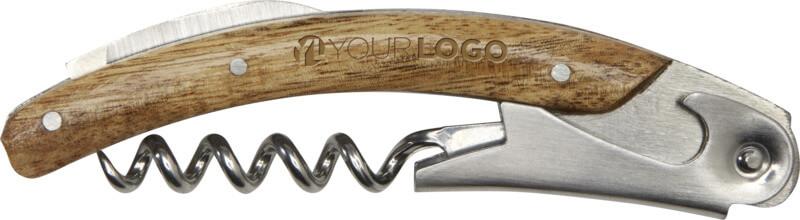 Conjunto de porta-garrafas de madeira de acácia. O conjunto inclui um saca-rolhas sommelier com faca retrátil de alumínio e funciona como porta-garrafas de vinho. Um presente perfeito para os amantes do vinho.