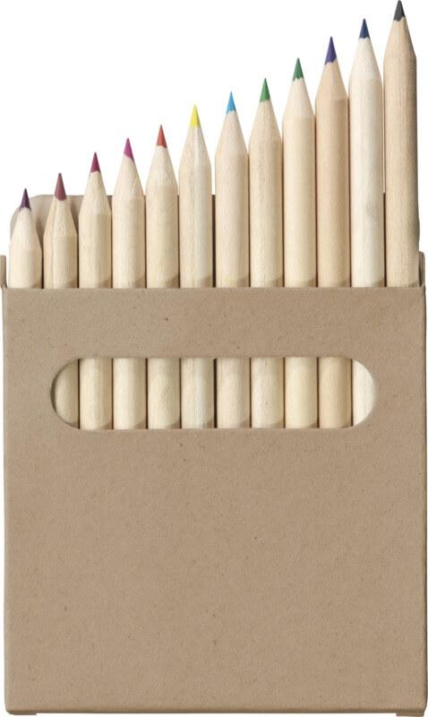 Conjunto para colorir com 12 lápis feitos de madeira de choupo. Ao optar por um conjunto para colorir feito de madeira proveniente de florestas geridas de forma responsável, pode apoiar práticas mais sustentáveis e éticas na produção de materiais de arte. Entregue com um manual numa caixa de papel kraft. Tamanho do lápis: 87 x 7 mm. Atenção! Não é adequado para crianças com menos de três anos. Peças pequenas. Perigo de asfixia.