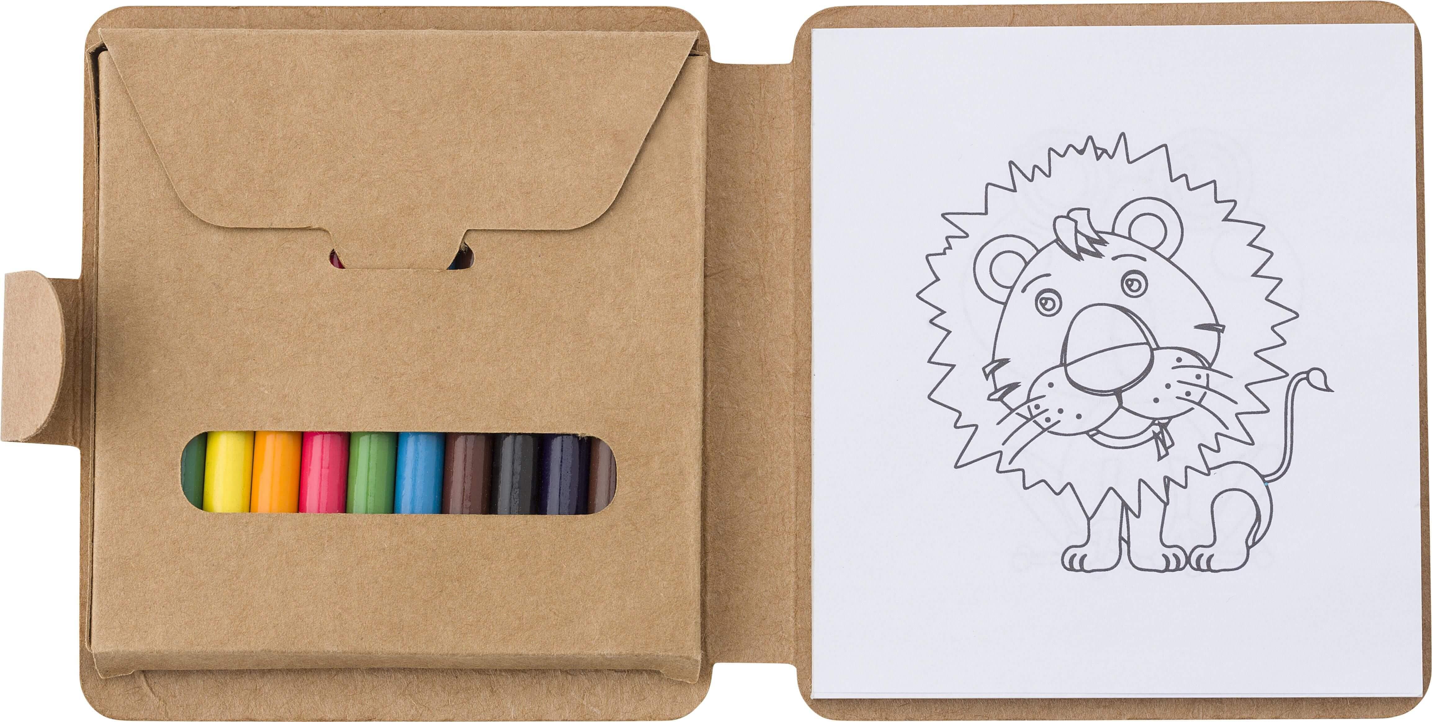 Conjunto de cartão para pintar com 12 lápis de cor e 12 desenhos a cores, bem como páginas em branco.