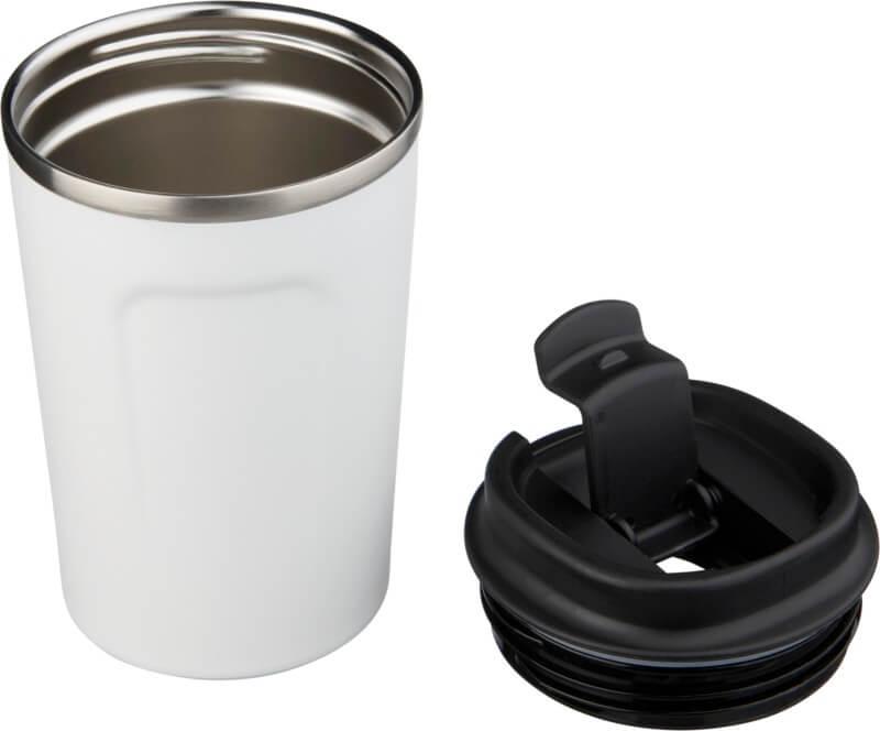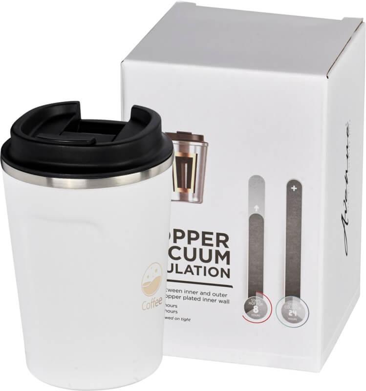 Com camada dupla em aço inoxidável e isolamento em cobre, mantém as suas bebidas frias por 24 horas e quentes por 8 horas. O design também evita a formação de condensação no exterior do copo. Tampa de rosca à prova de fugas. Revestimento em pó durável de acordo com as tendências. Capacidade volumétrica de 360ml. Apresentada numa caixa de presente “Avenue”.