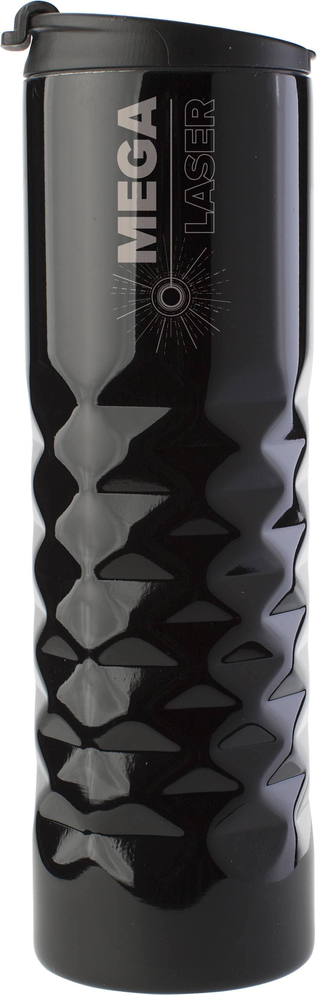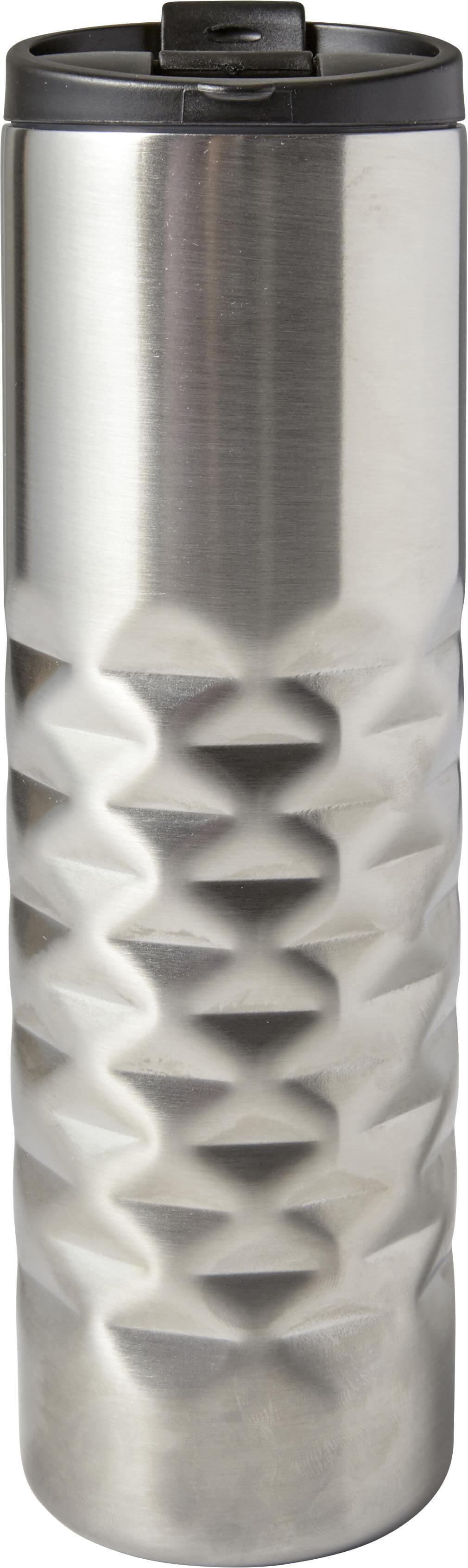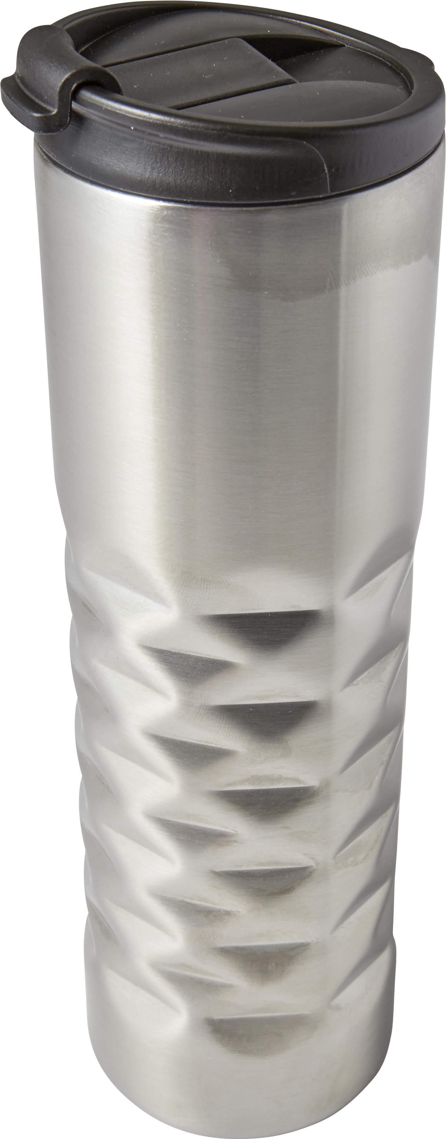 Copo (460 ml) com parede dupla em aço inoxidável 304 e forma geométrica.