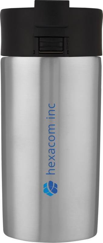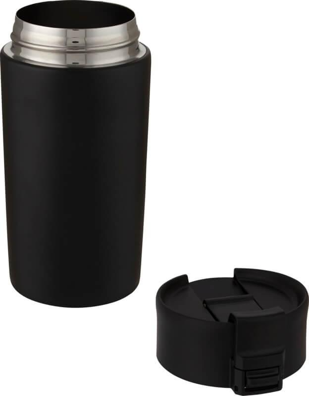 Copo isolado a vácuo de cobre de parede dupla com tampa de abertura com uma mão para beber facilmente durante a condução ou em multitarefa. O aço inoxidável 18/8 isolado mantém as bebidas quentes ou frias durante várias horas. Sem BPA e testado e aprovado segundo a Legislação Alemã de Segurança Alimentar (LFGB), e testado para teor de ftalatos de acordo com os regulamentos REACH. O copo térmico encaixa-se na maioria das máquinas de café e porta-copos dos carros. Capacidade volumétrica de 330 ml. Recomenda-se a lavagem à mão. Apresentada numa caixa de presente de cartão reciclado.