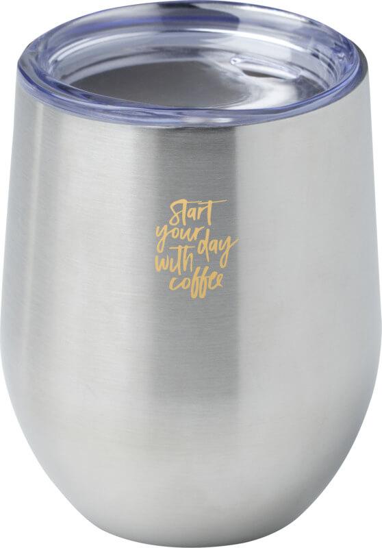 O “Corzo” é feito de aço inoxidável com certificação RCS e possui uma construção a vácuo de parede dupla com isolamento de cobre, que mantém as bebidas quentes durante 6 horas ou frias durante 24 horas. A sua construção previne a condensação do lado de fora do recipiente. Fácil de beber, tampa de encaixe. Inclui spay em pó de isolamento na área exterior. Ampla abertura para encher e despejar com facilidade. Capacidade de 350 ml. Apresentado numa caixa de presente de cartão reciclada.