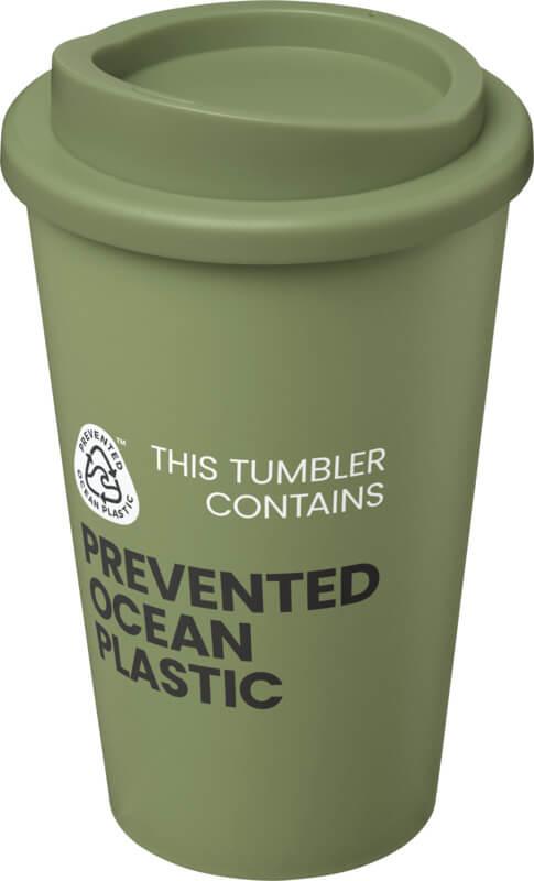 O copo isolado de parede dupla “Americano® POP” contém 47% de Prevented Ocean Plastic. Graças a uma inovação mundial pioneira na reciclagem, os copos de PP descartáveis agora podem ser recolhidos e reciclados mecanicamente, e serem transformados em novos produtos seguros para contacto com alimentos, como este! Na verdade, este copo térmico transforma 20 copos de plástico descartáveis num recipiente para bebidas que pode ser usado repetidamente, e depois reciclado novamente! Com uma capacidade prática de 350 ml, este copo é perfeito para o uso diário em casa, no escritório ou em viagens. A caneca é totalmente reciclável, não contém BPA e pode ser lavada na máquina de lavar louça. Cada copo térmico é fornecido na sua própria caixa de cartão individual, ideal para oferecer como prenda ou para apresentação em lojas. Fabricada no Reino Unido.