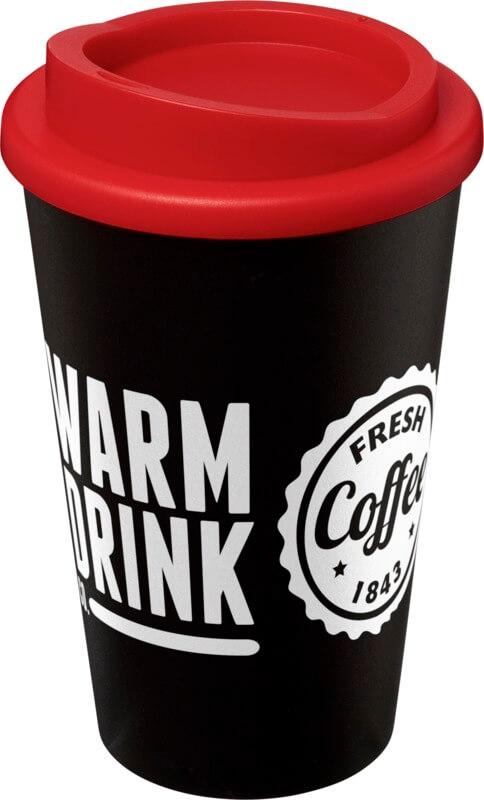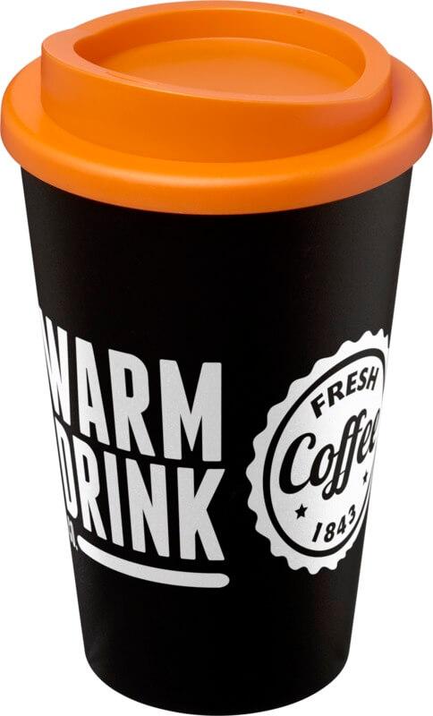 Copo isolado de parede dupla com uma capacidade de 350 ml e uma tampa de fixação de rosca segura. A caneca é totalmente reciclável e embalada num saco biodegradável. Fabricada no Reino Unido.