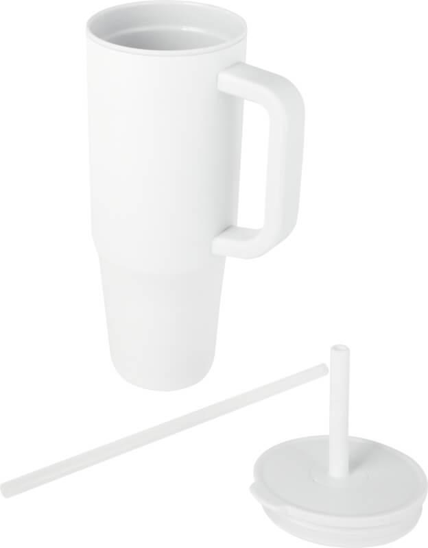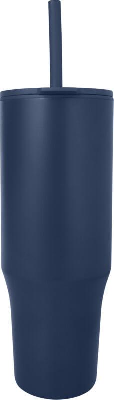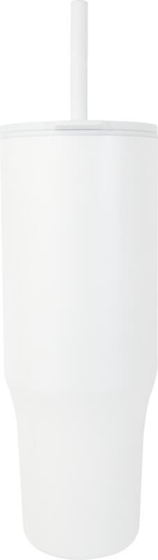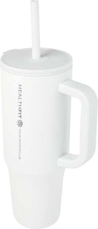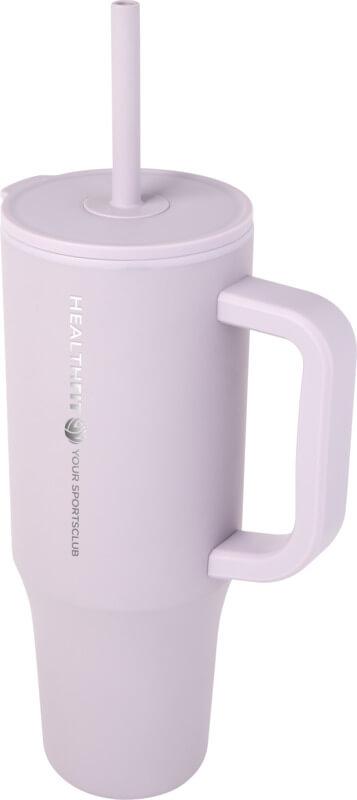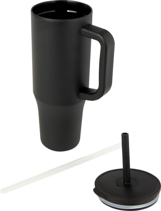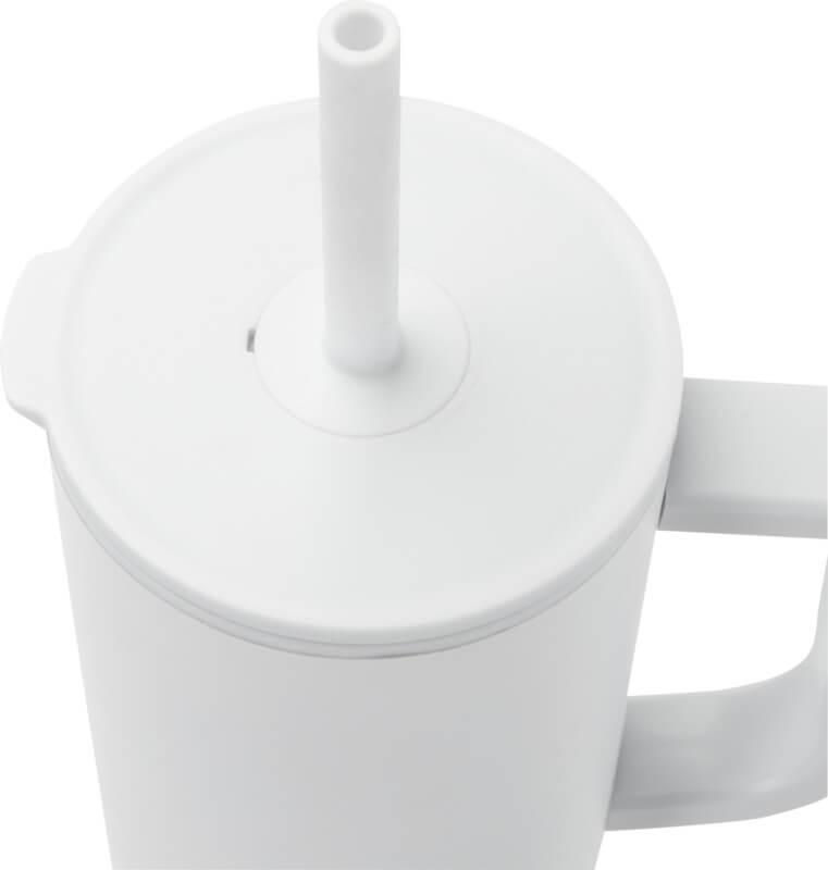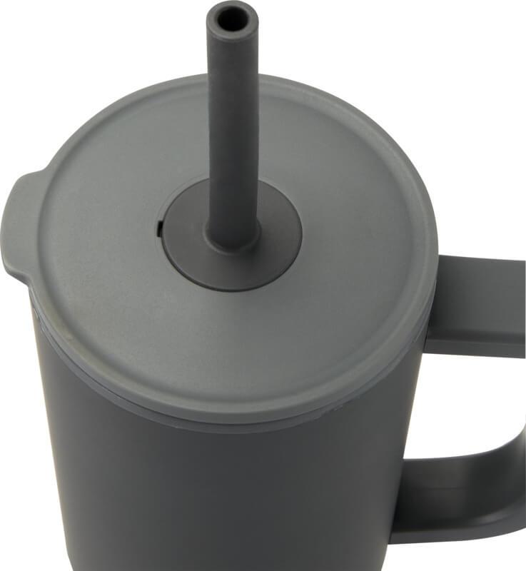 Copo térmico com parede externa durável feita de aço inoxidável reciclado com certificação RCS e parede interna feita de plástico. Inclui uma palhinha integrada de silicone de qualidade alimentar e uma tampa de pressão à prova de salpicos para uma experiência de consumo suave. Este copo térmico também é adequado para bebidas quentes mas não é aconselhável bebê-las pela palhinha. Para deixar a sua bebida arrefecer, remova a tampa antes de consumir. Capacidade volumétrica: 900 ml. Apenas lavagem à mão.