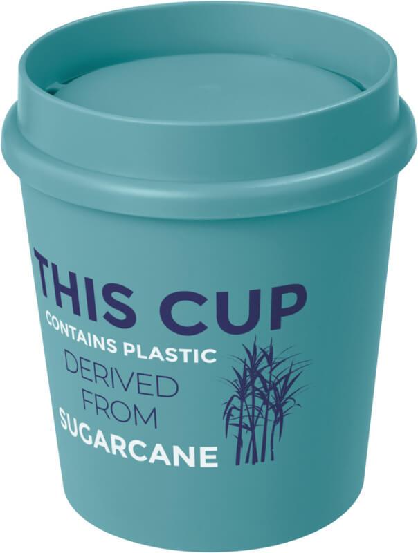 Copo térmico de parede simples com capacidade de 200 ml “Americano® SwitchRenew”. A inovadora tampa de 360° permite-lhe beber de qualquer lado do copo e melhora qualquer experiência de bebida com um aroma mais forte da bebida escolhida. O copo contém 25% de plástico derivado da cana-de-açúcar, reduzindo a necessidade de plástico virgem. A tampa e o copo térmico não contêm silicone, podem ser lavados na máquina de lavar louça, são seguros para o microondas e sem BPA. Como parte da família “Americano® Switch”, pode personalizar o seu copo térmico adicionando uma tampa e uma pega conforme necessário. Fabricada no Reino Unido e embalada num saco reciclado.