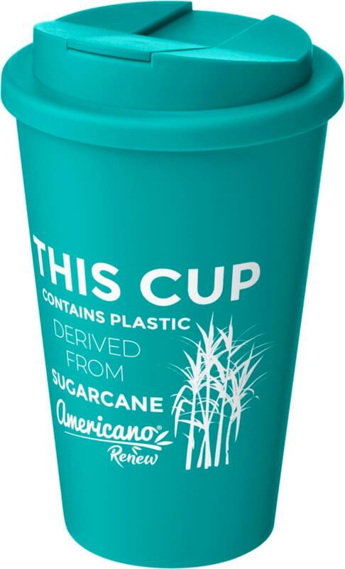 Copo térmico de parede dupla com tampa de rosca à prova de fuga e com capacidade para 350 ml. Contém 25% de plástico derivado da cana-de-açúcar. Esta fonte renovável absorve dióxido de carbono enquanto cresce e é um subproduto da indústria açucareira. A utilização da cana-de-açúcar significa que é utilizado menos óleo no fabrico de cada copo. O copo é 100% reciclável e embalado num saco compatível com compostagem doméstica. Fabricada no Reino Unido. Sem BPA.