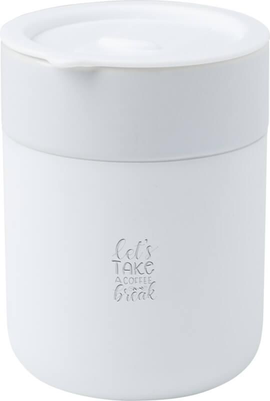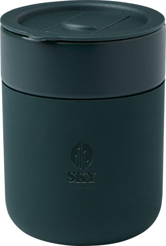 O copo térmico de cerâmica de parede única “Java” tem um design simples e prático para o uso diário e possui um invólucro de silicone para uma aderência confortável. Tampa à prova de derramamentos. Capacidade volumétrica: 330 ml.