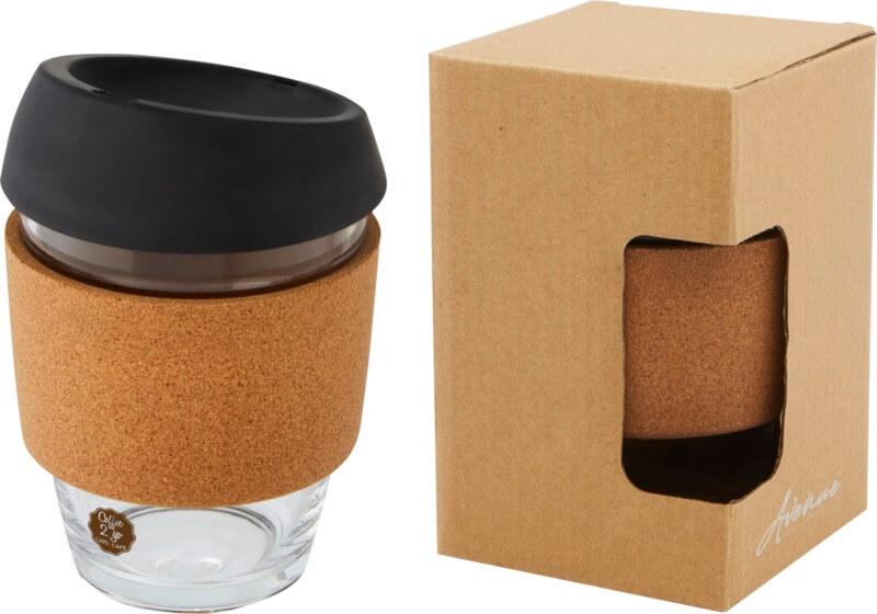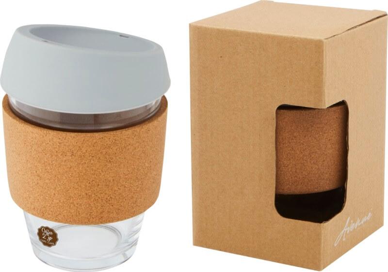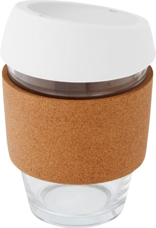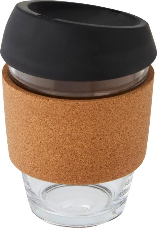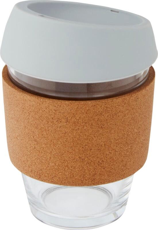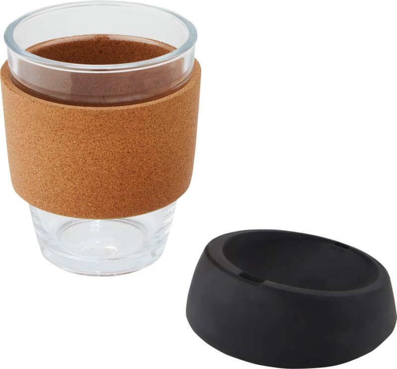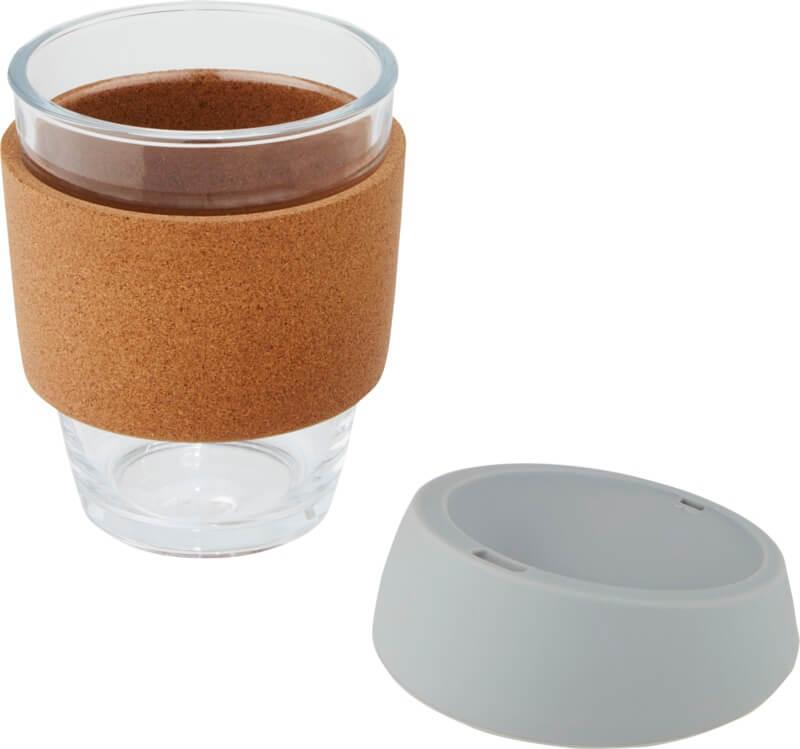 Copo térmico de vidro borossilicato de 360 ml com pega de cortiça e tampa de silicone “Lidan”