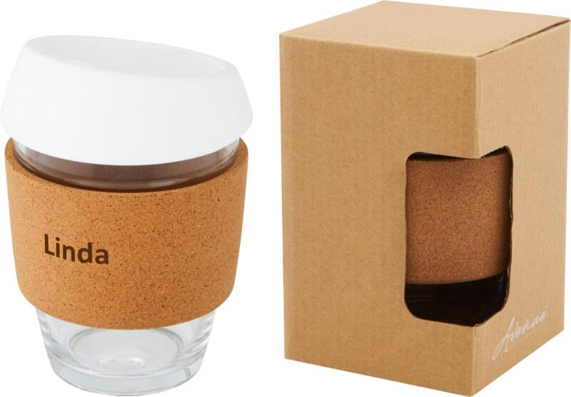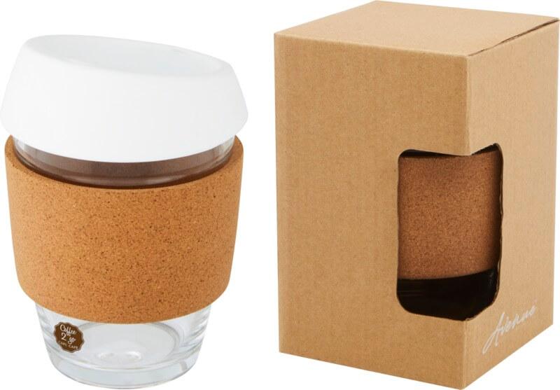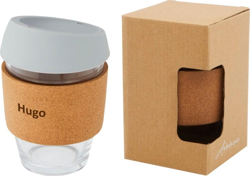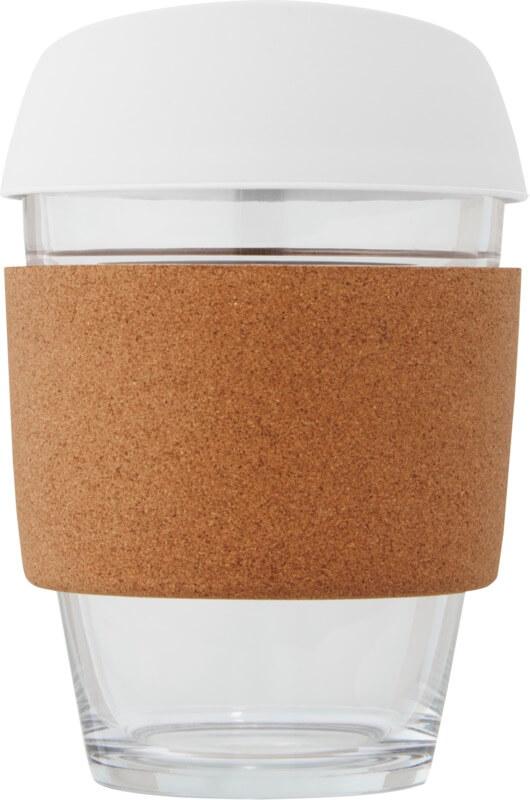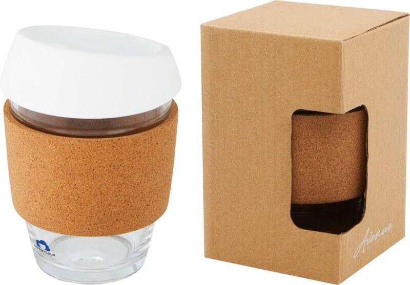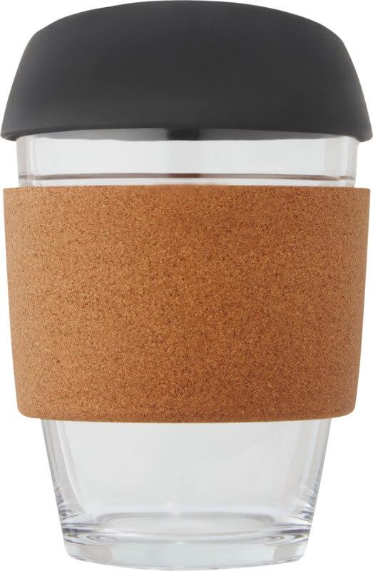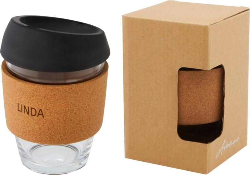 Copo térmico de vidro borossilicato de 360 ml com pega de cortiça e tampa de silicone “Lidan”