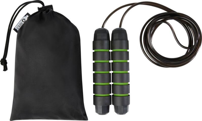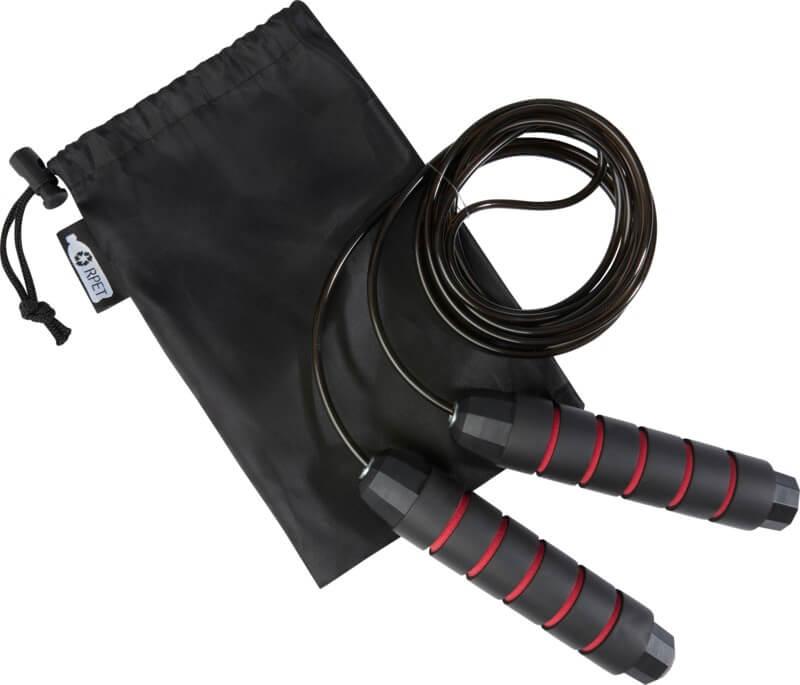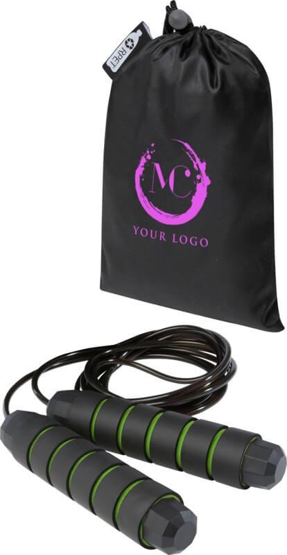 Corda de saltar profissional para adultos com pegas de espuma macia em forma ergonómica, proporcionando uma aderência firme e confortável durante o treino. O comprimento da corda é de 310 cm, o que permite saltar facilmente para adultos até 195 cm de altura. O comprimento da corda é ajustável e tem um rolamento de esferas incorporado de alta qualidade, que pode rodar 360° a alta velocidade para garantir uma rotação suave e sem esforço e evitar o emaranhamento. Entregue com uma bolsa de armazenamento (21 x 14 cm) feita de plástico PET reciclado, que fornece uma ótima área para impressão de um logotipo.