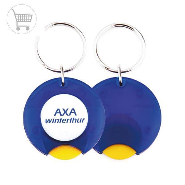 Porta-chaves CR-25 com moeda € para carrinho compras, 1 face (Ø25mm)