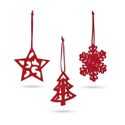 Conjunto de 3 decorações de Natal em feltro. 3 motivos diferentes. 80 x 90 x 3 mm