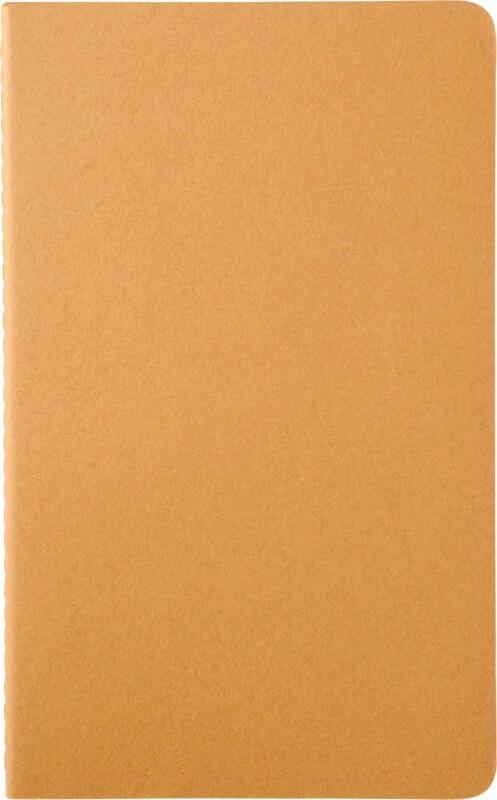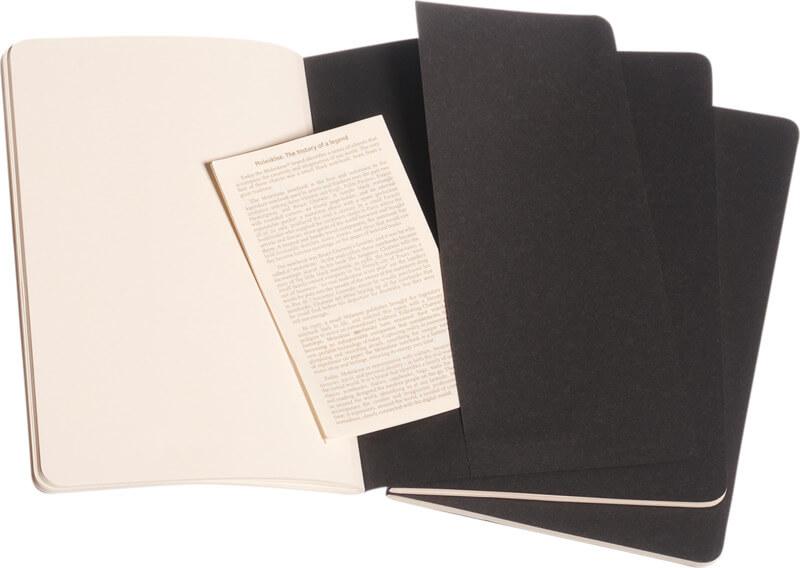 Possui uma capa de cartão com cantos arredondados. Costura visível na lombada, com aba para guardar notas soltas. Contém 80 páginas lisas de cor marfim de 70 g/m2. As últimas 16 folhas são destacáveis. A quantidade unitária é um exemplar.