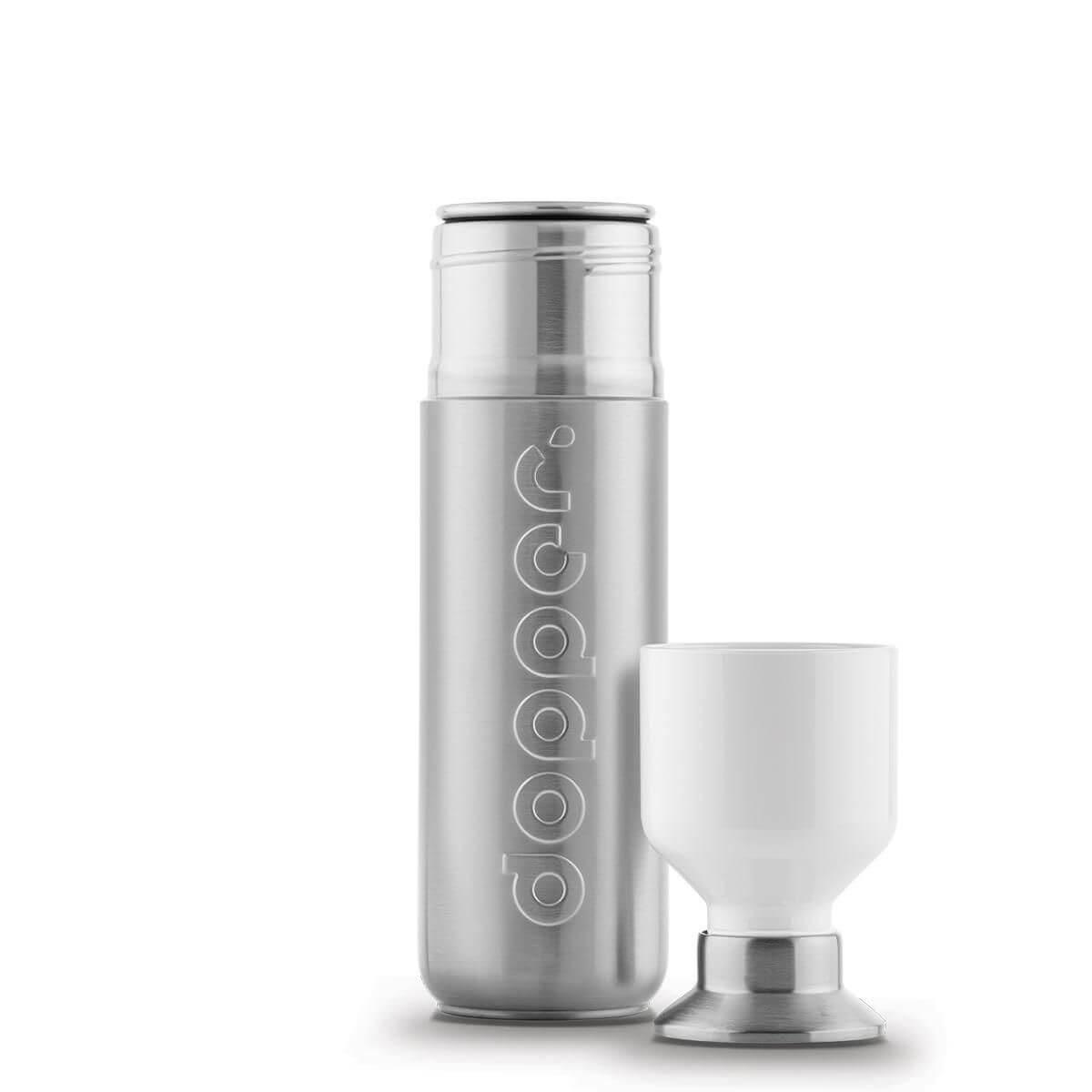 Preserve as águas cristalinas com o Dopper Steel 490 ml. Este cavaleiro de armadura brilhante é robusto, tem um look espetacular, e é ideal para colocar no seu saco de desporto. Essencial para aqueles que amam o desporto e as atividades ao ar livre!O Dopper Steel tem um conteúdo de 490 ml e possui três componentes de limpeza fácil. Pode ser lavado na máquina de lavar louça até 65°C / 149°F e deve ser usado apenas para água da torneira. O Dopper Steel é fabricado responsavelmente na China (Código de conduta BSCI) e é Cradle to Cradle Certified com nível de Bronze. Isento de BPA e ftalatos. Atenção: não é uma garrafa térmica.
