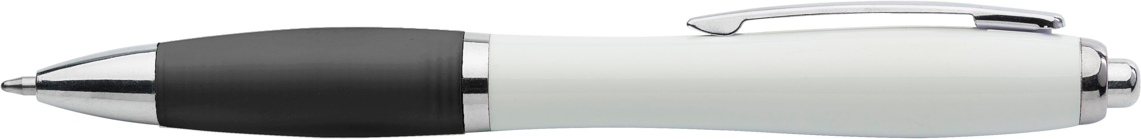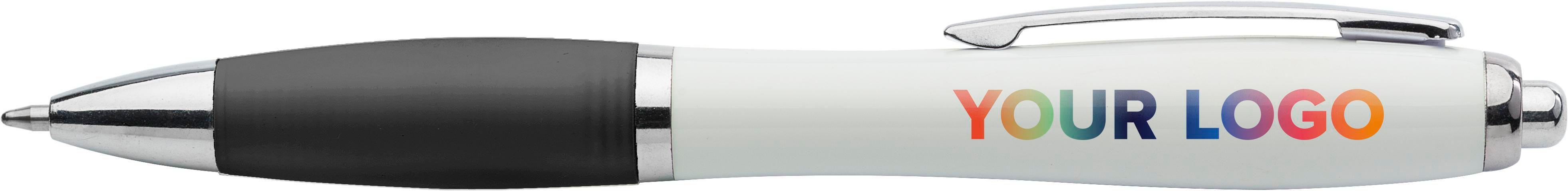 Esferográfica ABS reciclada com grip de borracha. Tinta azul.