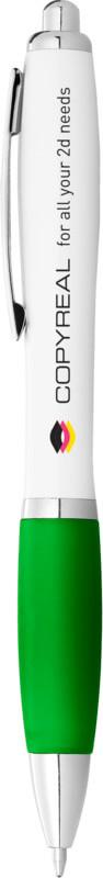 Esferográfica branca com pega colorida “Nash” (tinta azul)