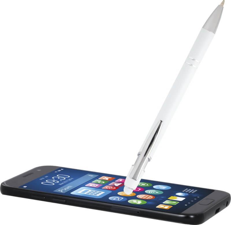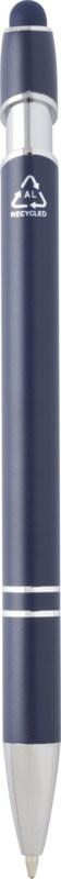 A esferográfica “Kish” com acabamento prateado possui corpo em alumínio reciclado e caneta touch de silicone. O alumínio reciclado reduz a quantidade de resíduos em aterros e ajuda a conservar os recursos naturais, com o objetivo de reduzir as emissões de efeito estufa. Cor da tinta: Azul. Comprimento de escrita: 800 metros. Tamanho do bico: 1,0 mm.
