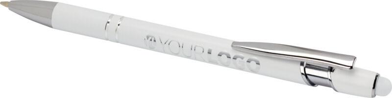 A esferográfica “Kish” com acabamento prateado possui um corpo feito de alumínio reciclado com uma caneta touch de silicone. O alumínio reciclado reduz a quantidade de resíduos em aterros e ajuda a conservar os recursos naturais, com o objetivo de reduzir as emissões de efeito de estufa. Cor da tinta: Preto. Comprimento de escrita: 800 metros. Tamanho do bico: 1,0 mm.