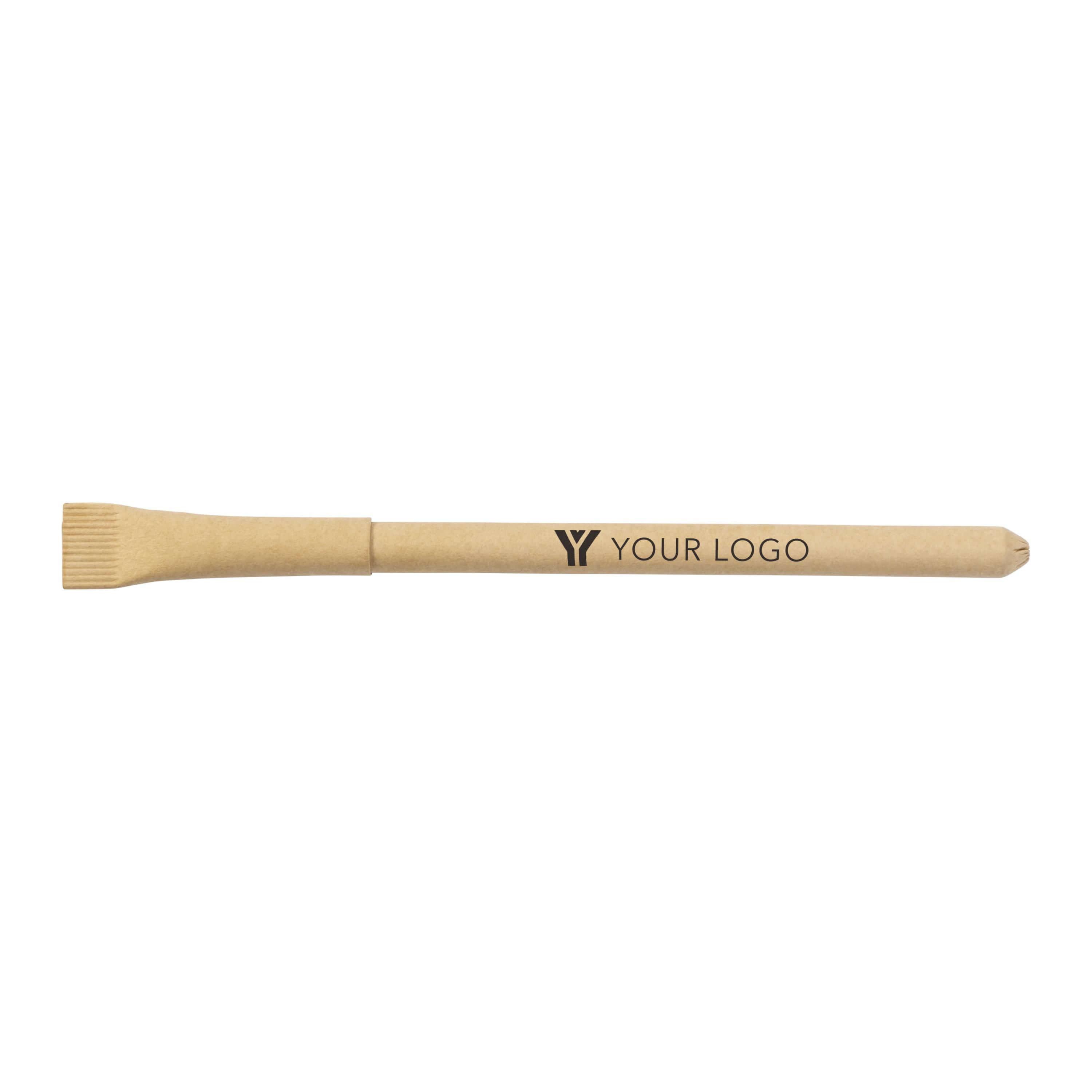 Esferográfica em papelão reciclado com tampa. Escrita azul.