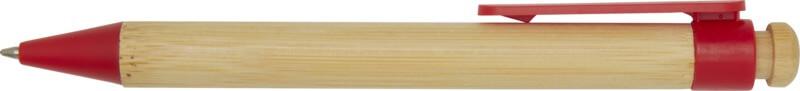 Esferográfica com clipe e ponta feitos de plástico reciclado, e o botão e o corpo são feitos de bambu. Cor da tinta: Preto. Comprimento de escrita: 1000 metros. Tamanho do bico: 1,0 mm.