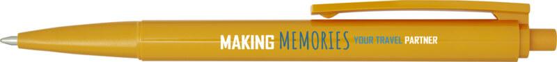 O corpo e o clipe da esferográfica “Elsa” são de plástico reciclado e a mola é de aço. Cor da tinta: Azul. Comprimento de escrita: 1800 metros. Tamanho do bico: 1,00 mm. Feito na Itália.