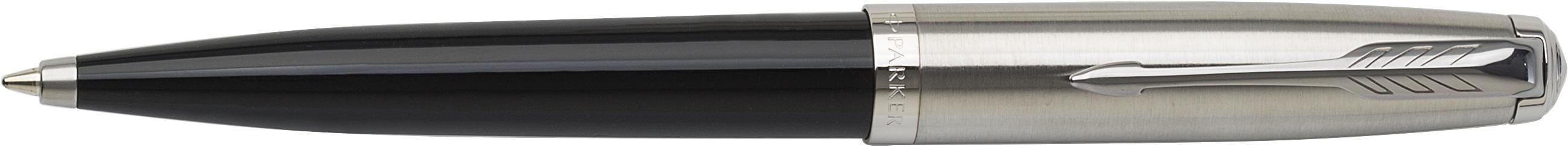 Esferográfica Parker 51 em aço inoxidável. Tinta preta. Apresentada em caixa de oferta.