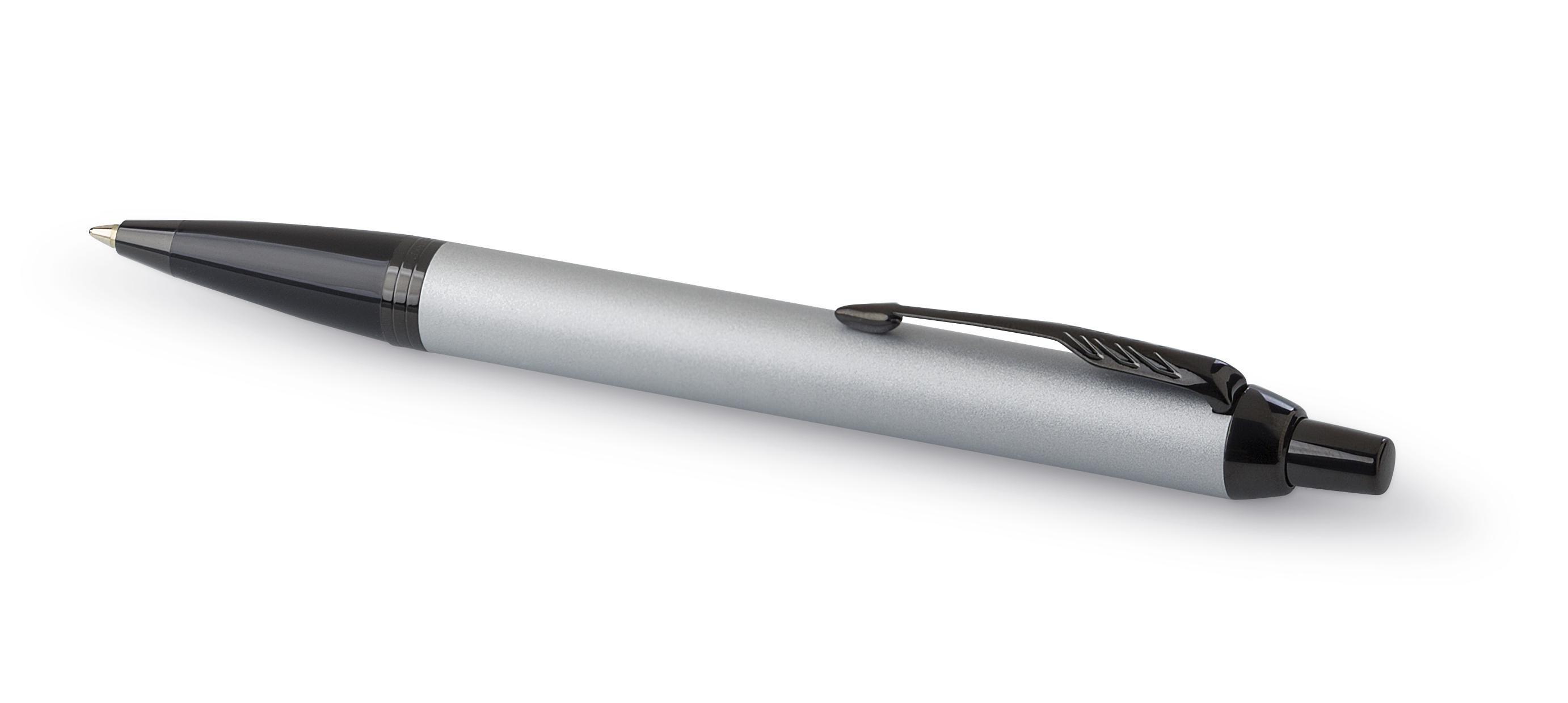 Esferográfica de metal Parker IM. Disponível com tinta azul. Apresentada em caixa de oferta.