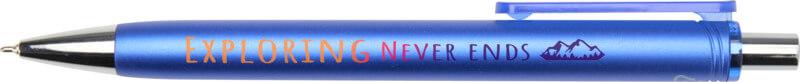 A esferográfica “Feld” com acabamento metálico combina funcionalidade diária com um visual elegante. Feita de plástico ABS reciclado com certificação RCS, esta esferográfica apresenta um acabamento metálico brilhante pulverizado, com detalhes em cromado polido. O seu mecanismo suave de pressionar e recarga de tinta semi-gel garantem uma experiência de escrita confortável e suave. Cor da tinta da caneta: preta. Comprimento de escrita: 500 m. Tamanho da ponta: 0,7 mm.