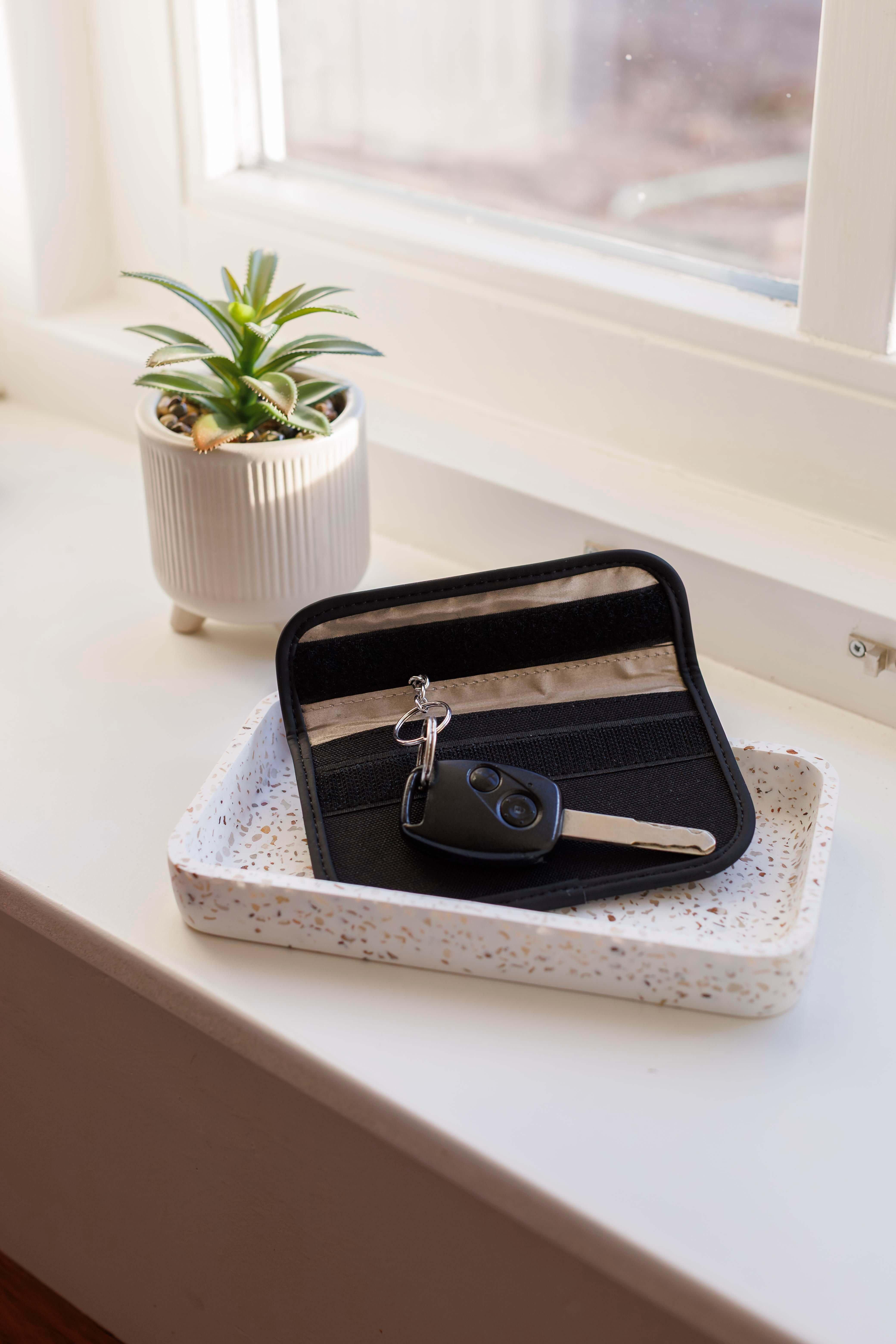 Estojo em poliéster 600D com fecho de velcro, concebida para chaves e cartões. Fabricada com PET reciclado (rPET) e PU, um material flexível e amortecedor, reduzindo o desperdício e oferecendo a mesma resistência e durabilidade. Possui proteção RFID integrada para impedir a clonagem ou o acesso não autorizado às chaves. Inclui um porta-chaves interno para armazenamento seguro e uma aba de velcro. Fabricada com material rPET para uma escolha mais sustentável.