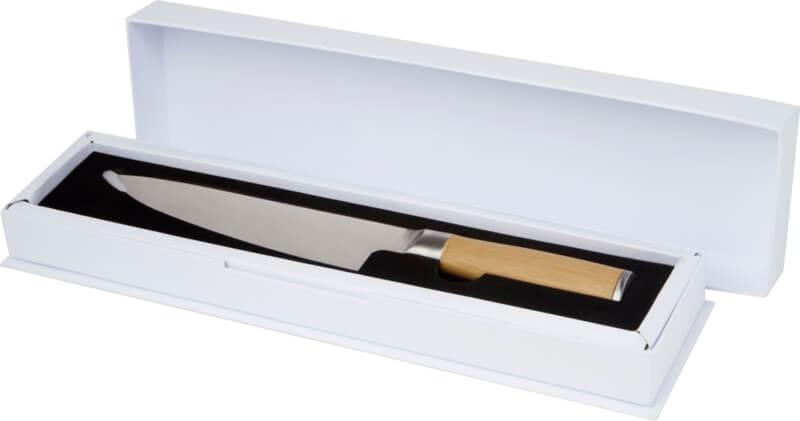 Faca de chef com cabo em bambu. O bambu foi obtido e produzido segundo normas sustentáveis.