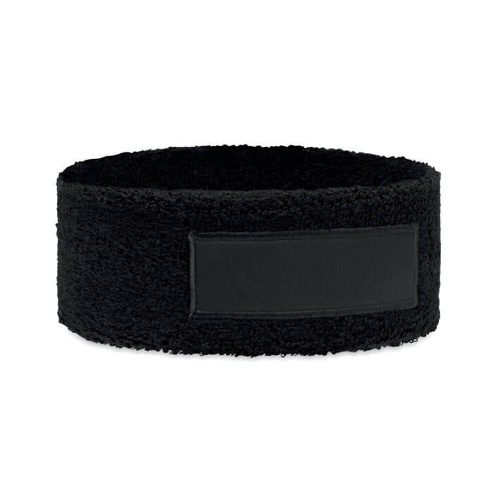 Fita para a cabeça em poli-algodão (79% algodão/13% elastic/8% poliéster) com remendo de algodão para a zona de impressão.
