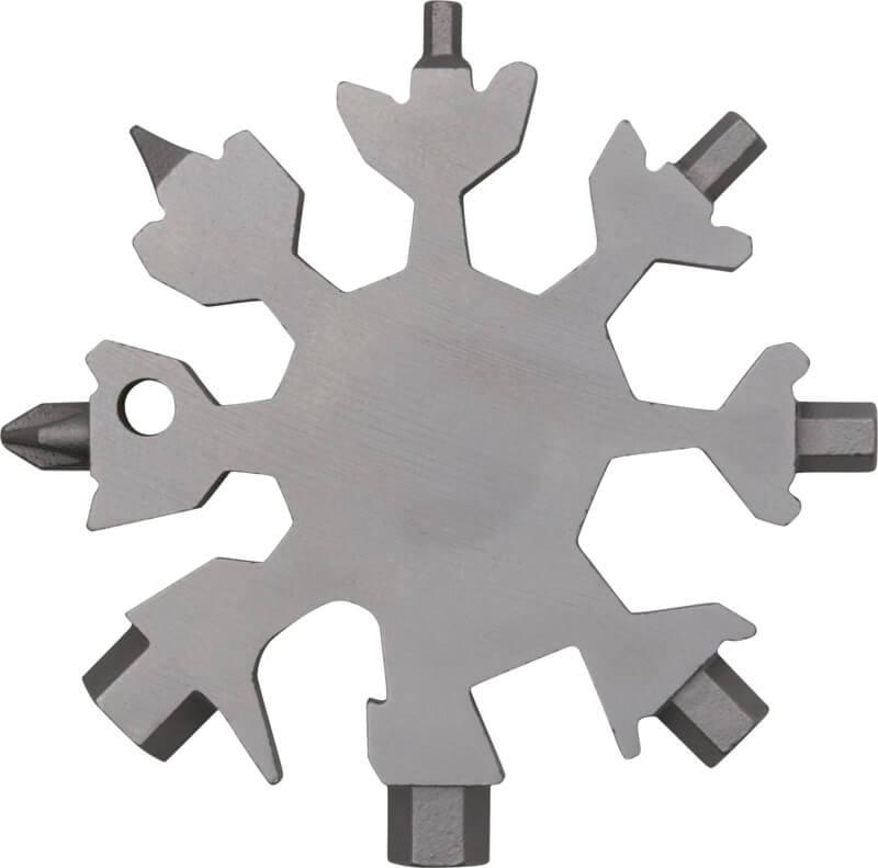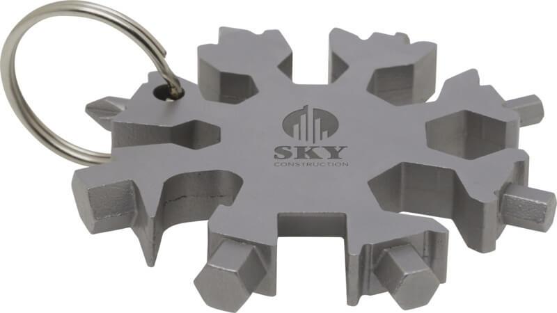 Uma ferramenta multifuncional robusta e compacta com 8 funções, feita de aço inoxidável, que pode levar consigo no porta-chaves.