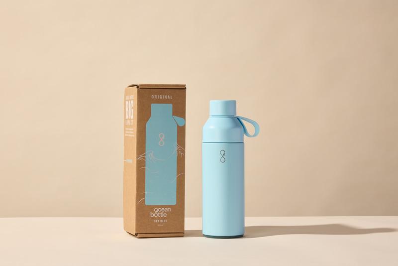 A garrafa de 500 ml “Ocean Bottle” tem isolamento a vácuo para manter as bebidas quentes até oito horas e frias até dezoito horas. Cada Ocean Bottle é totalmente neutra em carbono e recolhe 1000 garrafas plásticas para melhorar os meios de subsistência nas comunidades costeiras. A garrafa contém aço inoxidável reciclado e plástico oceânico reciclado e inclui um NFC Smart Chip para recolher mais plástico em cada recarga. A abertura dupla facilita a limpeza e o enchimento da garrafa e a tampa à prova de fugas tem um loop de transporte fácil. A garrafa é lavável na máquina de lavar louça e não contém BPA. Apresentado em caixa de presente de cartão reciclado de origem responsável.