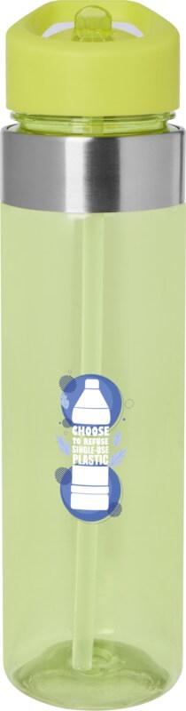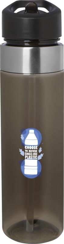 Garrafa de água com capacidade para 650 ml e com um bico de encaixe útil para beber com facilidade. Feito de material “Tritan” durável com detalhes de aço inoxidável na parte superior da garrafa.