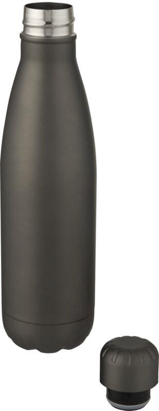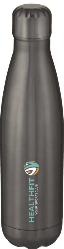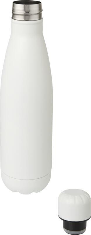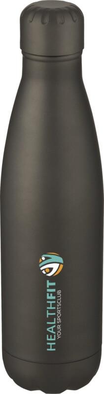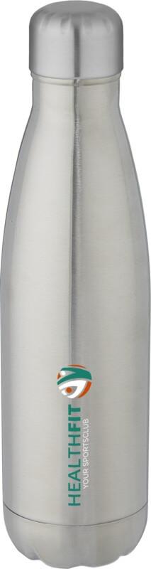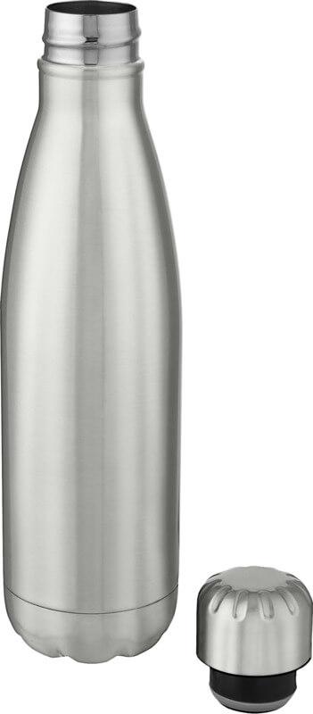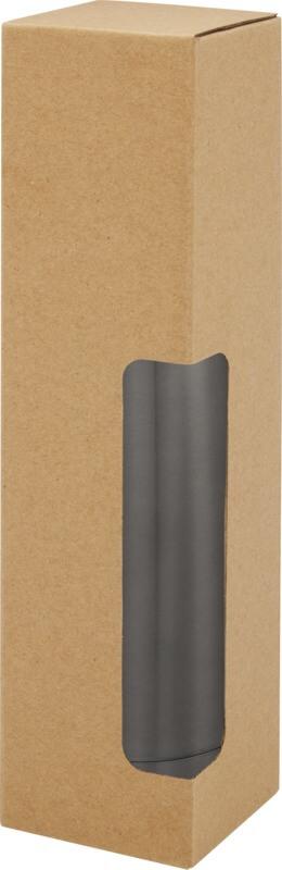Garrafa em aço inoxidável isolada a vácuo com um design icónico. O aço inoxidável 18/8 isolado mantém as bebidas quentes ou frias durante várias horas. Testado e aprovado sob a Legislação Alemã de Segurança Alimentar (LFGB), e testado para conteúdo de ftalatos de acordo com os regulamentos REACH. Com uma base que cabe na maioria dos suportes para copos, esta elegante garrafa de água é um artigo promocional perfeito. Capacidade volumétrica de 500 ml. Apresentada numa caixa de presente branca de cartão.