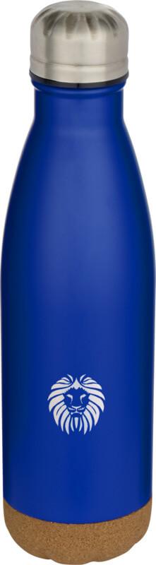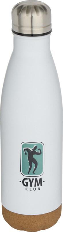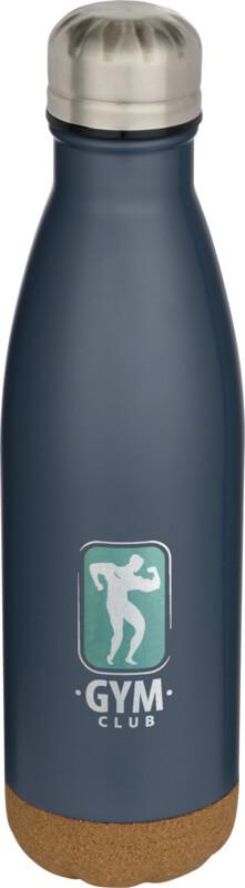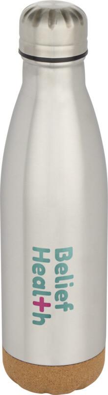 Garrafa de água de aço inoxidável com isolamento a vácuo e detalhes de cortiça no fundo. O isolamento de parede dupla mantém as bebidas quentes 12 horas e 48 frias. Apresentada numa caixa de presente de cartão reciclado. Capacidade volumétrica: 500 ml.