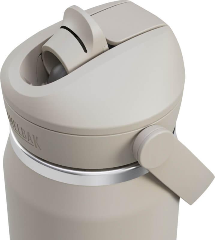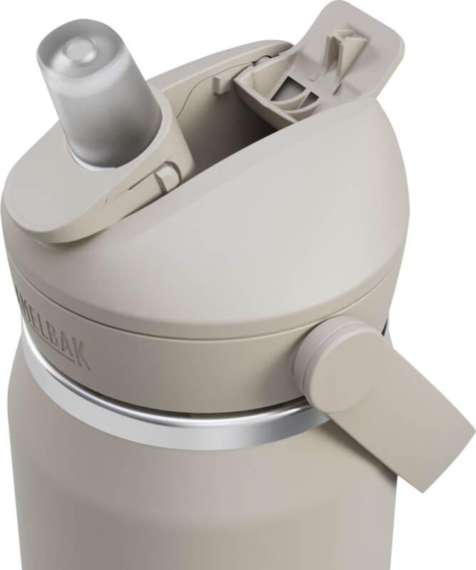 A garrafa de água “CamelBak® Thrive Flip VSS” (aço inoxidável com isolamento a vácuo) foi concebida para proporcionar hidratação durante todo o dia. Vem com uma proteção integrada para proteger contra amolgadelas e garantir uma aderência segura em praticamente qualquer superfície. Um acabamento forte e durável em pó mantém o excelente sabor das bebidas, enquanto o isolamento a vácuo de parede dupla as mantém quentes ou frias durante horas. Outras funcionalidades incluem um canudo e uma válvula “EasyFlow”, tampa 100 % à prova de fugas, uma capa contra o pó para proteção e uma alça giratória macia para fácil transporte. O design adapta-se à maioria dos porta-copos, o que o torna prático para viagens ou caminhadas de um dia. A garrafa inteira pode ser lavada na máquina de lavar louça para uma limpeza rápida e fácil. Capacidade volumétrica: 740 ml.