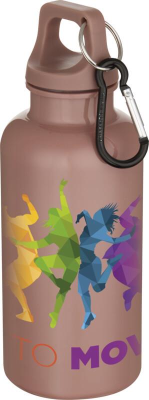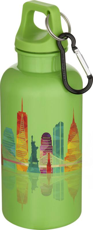 Mantenha-se sempre hidratado com esta garrafa de água durável e leve de 400 ml, feita de RPET com certificação RCS. É o companheiro perfeito durante o exercício, em viagens rápidas ou no escritório. A garrafa de parede única “Oregon” possui uma tampa de rosca e muito espaço para adicionar qualquer tipo de logótipo. Prenda o mosquetão anexado (não adequado para escalada) firmemente a uma mala para evitar perdê-la. Fabricado em conformidade com o processo de reciclagem PET aprovado pela EFSA.