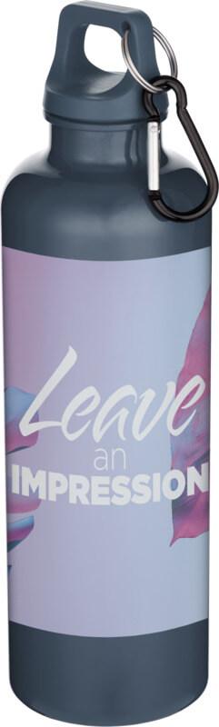 É possível manter-se sempre hidratado com esta garrafa de água durável e leve de 750 ml, feita de RPET com certificação RCS. É o companheiro perfeito durante o exercício, em viagens rápidas ou no escritório. A garrafa “Oregon” de parede única tem uma tampa de rosca e muito espaço para adicionar qualquer tipo de logótipo. Prenda o mosquetão anexado (não adequado para escalada) firmemente a uma mala para evitar perdê-la. Fabricada em conformidade com o processo de reciclagem de PET aprovado pela EFSA.