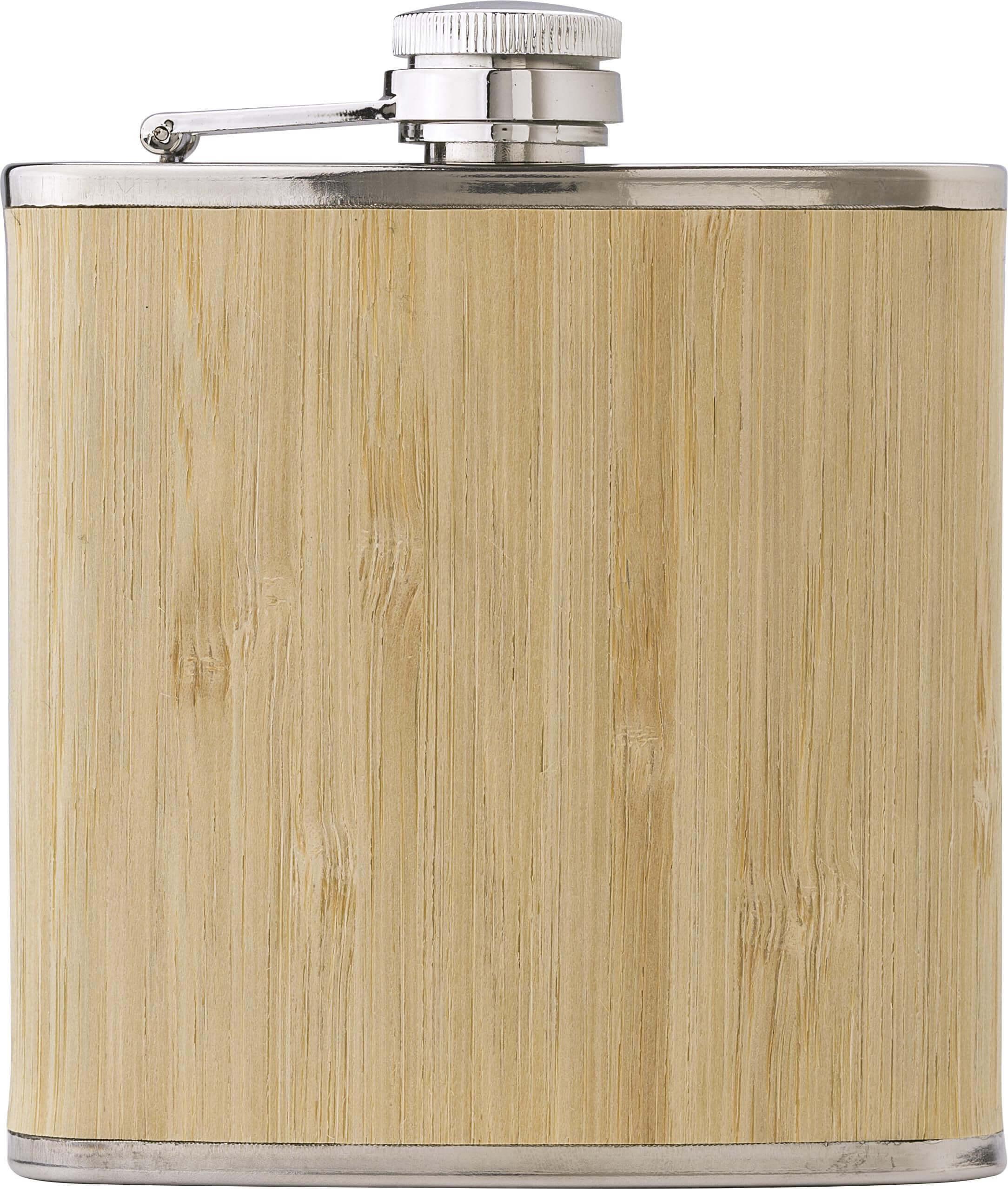 Garrafa de bolso em aço inoxidável (s/s304) e bambu (175 ml). O bambu é uma camada no exterior.