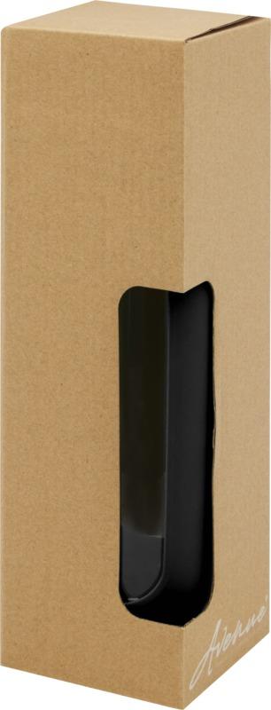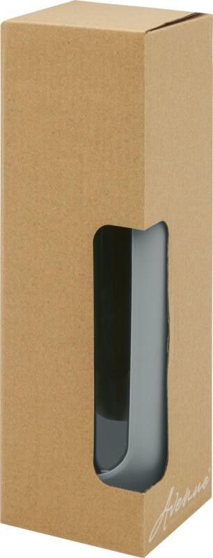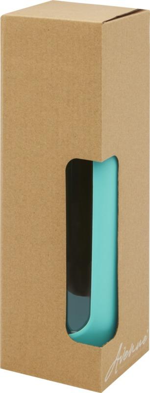 Garrafa de água reutilizável ecológica que proporciona uma experiência de beber água pura. A garrafa é feita de vidro borossilicato durável que conserva o sabor puro e fresco da água, e não contém produtos químicos nocivos. Possui uma pega de silicone com tampa à prova de fugas feita de bambu orgânico. Testado e aprovado sob a Legislação Alemã de Segurança Alimentar (LFGB), e testado para conteúdo de ftalatos de acordo com os regulamentos REACH. Capacidade volumétrica de 600 ml. Ao retirar a pega e a tampa, a garrafa pode ser lavada na máquina de lavar louça. Apresentada numa caixa de presente branca de cartão.